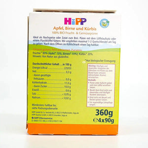 HiPP Fruit Pouches - Apple, Pear and Pumpkin (4+ Months) - 4 Pouches